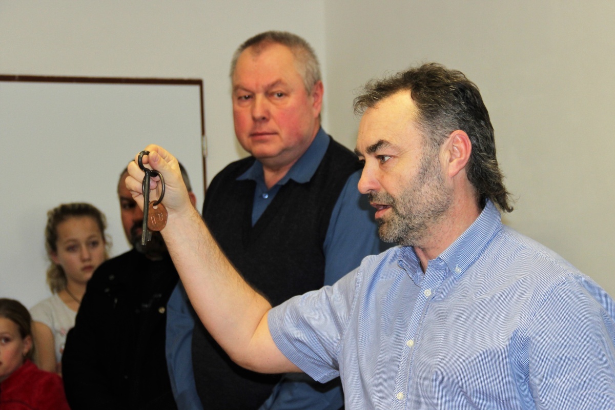 Předání klíče a proslovy starosty D. Bousova pana Bočka, pana Vaníčka a paní Pickové k občanům Horního Bousova